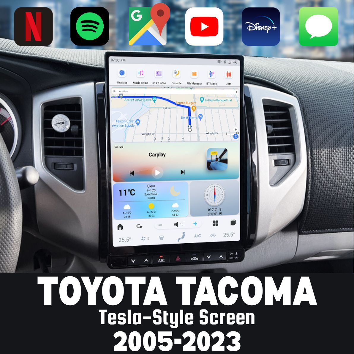 Tesla Screen Toyota Tacoma 2005-2023 Apple CarPlay Android Auto. Toyota Tacoma 2005 2006 2007 2008 2009 2010 2011 2012 2013 2014 2015 2016 2017 2018 2019 2020 2021 2022 2023.